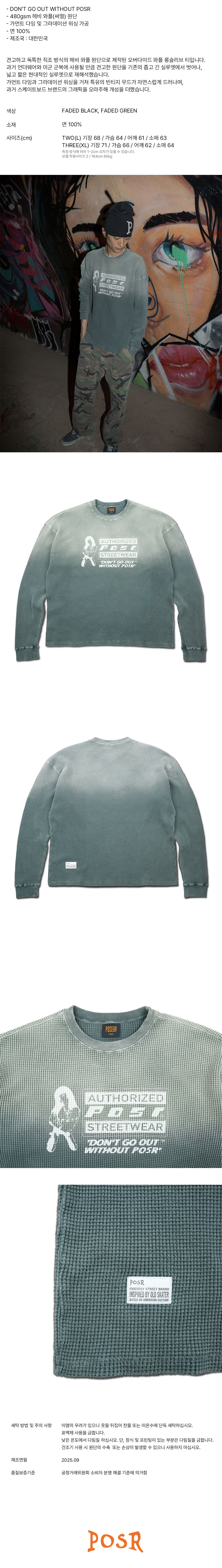 OVD POSR WAFFLE TEE / FADED GREEN