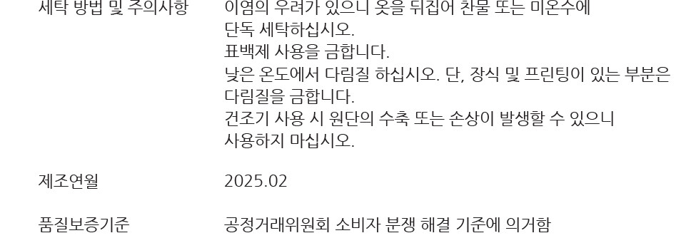 - 상품 하자, 오배송의 경우 수령일로부터 7일 이내 고객센터 접수 후 교환∙반품이 가능합니다. (교환/반품비 무료)